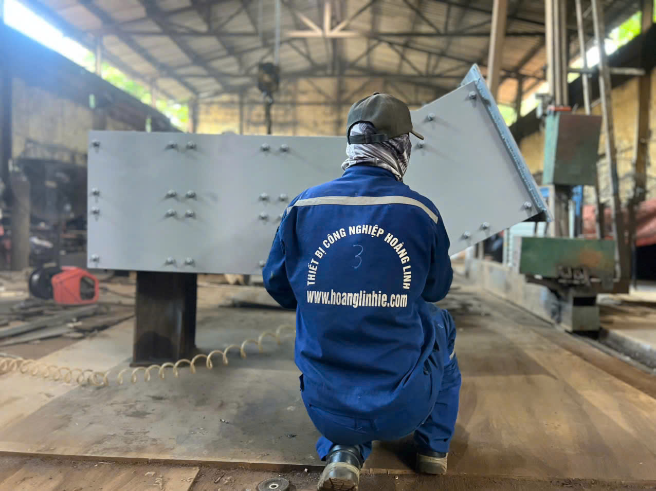 Team Hoàng Linh thi công lắp đặt máng chuyển liệu chống mài mòn